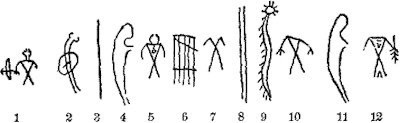 (Pl. VII), according to Ojibwa’s statement, are as follows: “Our forefathers were living on the great salt water toward the rising sun, the great Megis (seashell) showed itself above the surface of the great water and the rays of the sun for a long time period were reflected from its glossy back. It gave warmth and light to the An-ish-in-aub-ag (red race). All at once it sank into the deep, and for a time our ancestors were not blessed with its light. It rose to the surface and appeared again on the great river which drains the waters of the Great Lakes, and again for a long time it gave life to our forefathers and reflected back the rays of the sun. Again it disappeared from sight and it rose not till it appeared to the eyes of the An-ish-in-aub-ag on the shores of the first great lake. Again it sank from sight, and death daily visited the wigiwams of our forefathers till it showed its back and reflected the rays of the sun once more at Bow-e-ting (Sault Ste. Marie). Here it remained for a long time, but once more, and for the last time, it disappeared, and the An-ish-in-aub-ag was left in darkness and misery, till it floated and once more showed its bright back at Mo-ning-wun-a-kaun-ing (La Pointe Island), where it has ever since reflected back the rays of the sun and blessed our ancestors with life, light, and wisdom. Its rays reach the remotest village of the widespread Ojibways.” As the old man delivered this talk he continued to display the shell, which he represented as an emblem of the great megis of which he was speaking. A few days after, anxious to learn the true meaning of this allegory, ***I requested him to explain to me the meaning of his Me-da-we harangue. After filling his pipe and smoking of the tobacco I had presented he proceeded to give me the desired information, as follows: “My grandson,” said he, “the megis I spoke of means the Me-da-we religion. Our forefathers, many string of lives ago, lived on the shores of the great salt water in the east. Here, while they were suffering the ravages of sickness and death, the Great Spirit, at the intercession of Man-a-bo-sho, the great common uncle of the An-ish-in-aub-ag, granted them this rite, wherewith life is restored and prolonged. Our forefathers moved from the shores of the great water and proceeded westward. “The Me-da-we lodge was pulled down, and it was not again erected till our forefathers again took a stand on the shores of the great river where Mo-ne-aung (Montreal) now stands. “In the course of time this town was again deserted, and our forefathers, still 184 proceeding westward, lit not their fires till they reached the shores of Lake Huron, where again the rites of the Me-da-we were practiced. “Again these rites were forgotten, and the Me-da-we lodge was not built till the Ojibways found themselves congregated at Bow-e-ting (outlet of Lake Superior), where it remained for many winters. Still the Ojibways moved westward, and for the last time the Me-da-we lodge was erected on the island of La Pointe, and here, long before the pale face appeared among them, it was practiced in its purest and most original form. Many of our fathers lived the full term of life granted to mankind by the Great Spirit, and the forms of many old people were mingled with each rising generation. This, my grandson, is the meaning of the words you did not understand; they have been repeated to us by our fathers for many generations.” In the explanation of the chart obtained at Red Lake, together